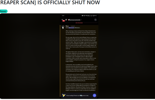 News Reaper Scans Shuts Down After Cease and Desist from Kakao Entertainment July 19, 2025 In a major development for the online manga and webtoon community, Mark Read More